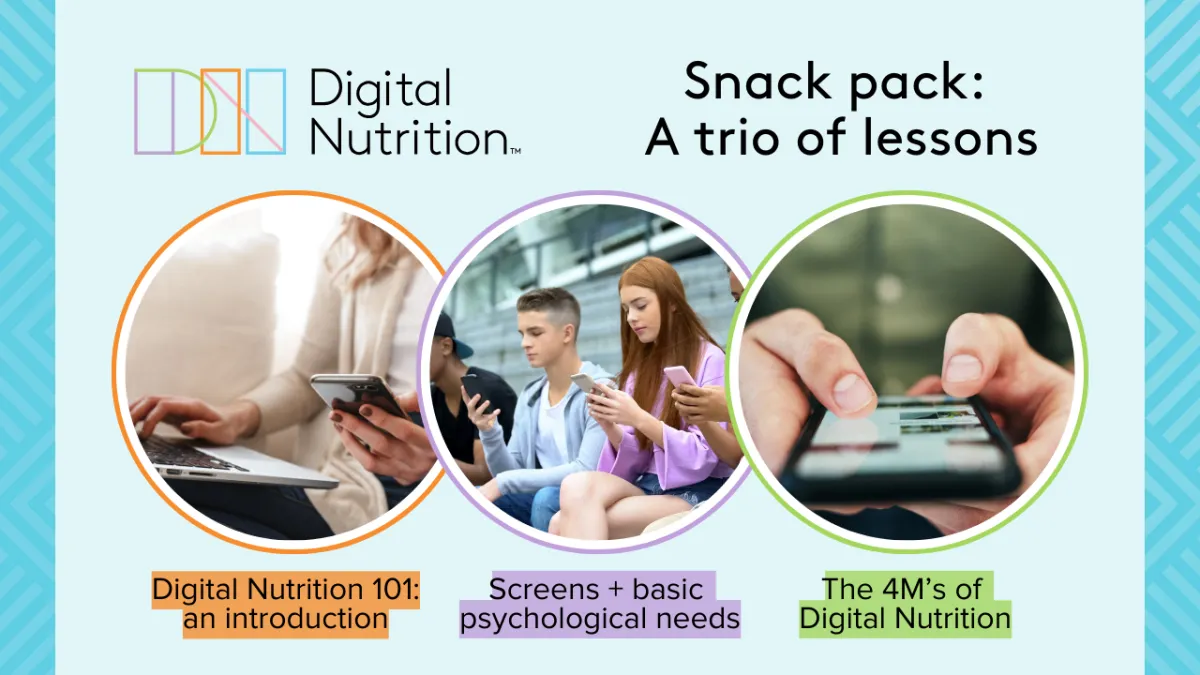 ⭐ Digital Nutrition™: an introduction for all humans who use screens (60 mins - usually $27 AUD)This is the foundations of the Digital Nutrition™ positive technology use philosophy and the analogy of food and screen-based media-use. We look at how technology has influenced our society, culture and modern lifestyles and how to seek out activities with higher #virtualvitamins and manage our digital consumption habits without banning devices outright.